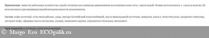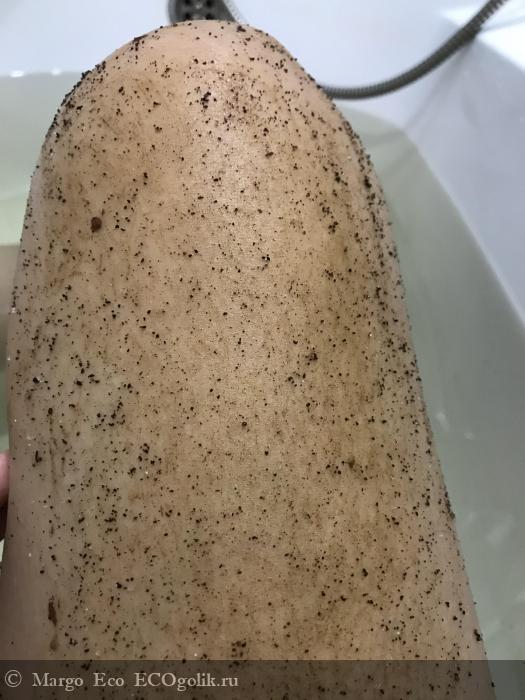 На влажную кожу наношу массажными движениями. Скраб довольно рассыпчатый. Легко смывается теплой водой, не оставляя после себя пленки или липкости.
