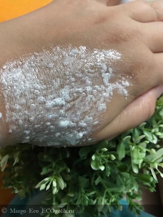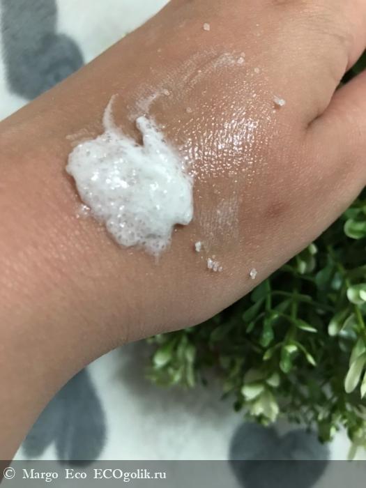 При нанесение можно почувствовать как тает скраб при растирании. Очень экономичный расход. Скраб не осыпается! Все остается на теле и очень легко растирается.