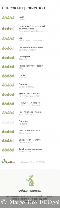 Ключевые ингредиенты в маске – йогурт и папайя, хотя они стоят на первом месте не в составе, а лишь на упаковке).