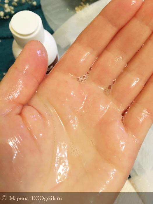 Текстура у геля очень и очень скользящая, настолько гладкая, что нет никаких шансов повредить кожу и растянуть её во время умывания. Он очень деликатен и нежен в воздействии на кожу, но при этом очищает идеально.