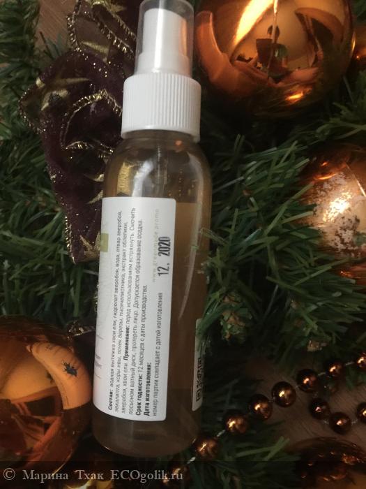 Состав: водная вытяжка хвои ели, гидролат зверобоя, подготовленная вода, отвар зверобоя, эвкалипта, коры ивы, почек березы, тысячелистника, экстракт облепихи, зверобоя, хвои ели. Это 100% натуральный сотав.