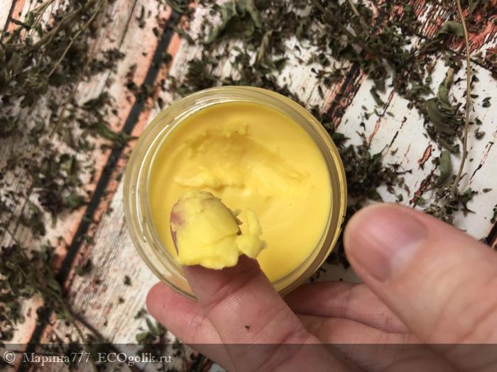 По консистенции бальзам достаточно плотный и при этом воздушный, с пальчиками словно сцепляется и мгновенно начинает подтаивать.