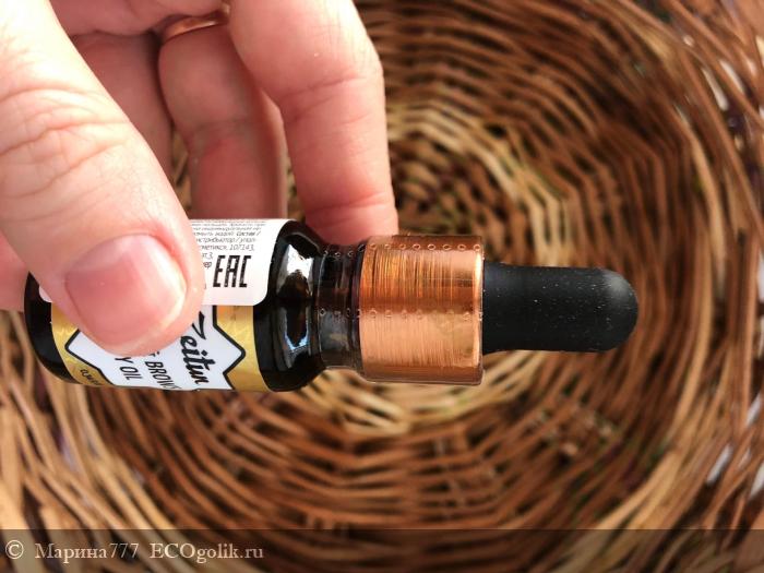 Пузырек с маслом красоты снабжен пипеткой. Она мягкая, легко набирает продукт, трубочка пипетки выполнена из довольно толстого стекла, приятно пользоваться.