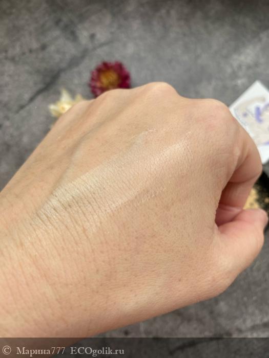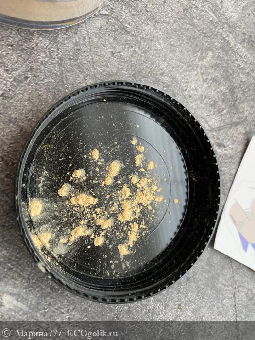 Для начала надо насыпать немного средства в крышечку. Продукт мельчайшего помола, очень легкий, словно дымка. При нанесении на руку, кажется словно подсвечивает. Нежный, не ощутимый!