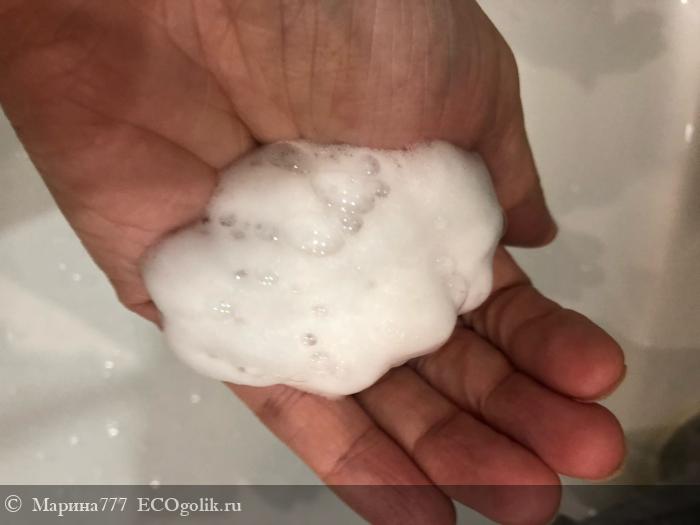 Не распозналось только эфирное масло розы, вообщем, тут состав отличный и без вопросов. Кстати именно роза и сандал задают тон пенке и делают ее ароматной. Аромат весьма необычный, такой буддийский что-ли какой-то. Для утреннего умывания очень даже интересный.