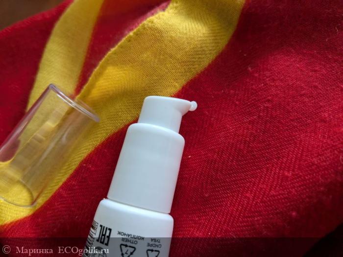 Крем, хотя и находится в тюбике (30 мл), дозируется при помощи дозатора, что меня несказанно порадовало. Такая упаковка очень удобна. Сама она пластиковая, что позволяет не утяжелять крем и возить его спокойно с собой. С другой стороны, тюбиковый формат морально устарел, потому что затягивает внутрь воздух (из-за этого крем окисляется, состав его теряет свою эффективность). Кроме того, не позволяет экономично допользовать средство (плохо выдавливается, «плюётся» и т.д.). А дозатор – это всегда гарантия того, что средством можно пользоваться до самого конца максимально комфортно.