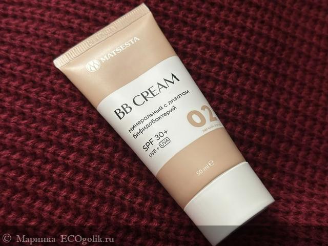 Многие годы я возмущалась, что отечественные производители не выпускают бб-кремы с солнцезащитный фактором. И вот дождалась. Наконец, можно купить не просто стоящий бб, но и с защитой от солнца, а также натуральным составом. Конечно, надо поискать. Но когда находишь, то расставаться уже не хочется. Это минеральный бб-крем с лизатом бифидобактерий MATSESTA. У меня оттенок 02.