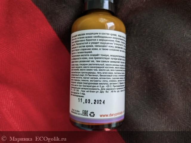 Крем Дары Кавказской природы ночной очень хорошо питает кожу, увлажняет ее, также повышает эластичность, что позволяет избежать ранних морщин. Особенно мне приглянулись в составе крема масло жожоба, масло сладкого миндаля, ламинария, сквалан. Но все компоненты работают на увлажнение и питание. Поэтому много и других полезностей. Экоголик одобрил состав, что подтверждаю скрином. И могу рекомендовать всем, у кого сухая кожа.