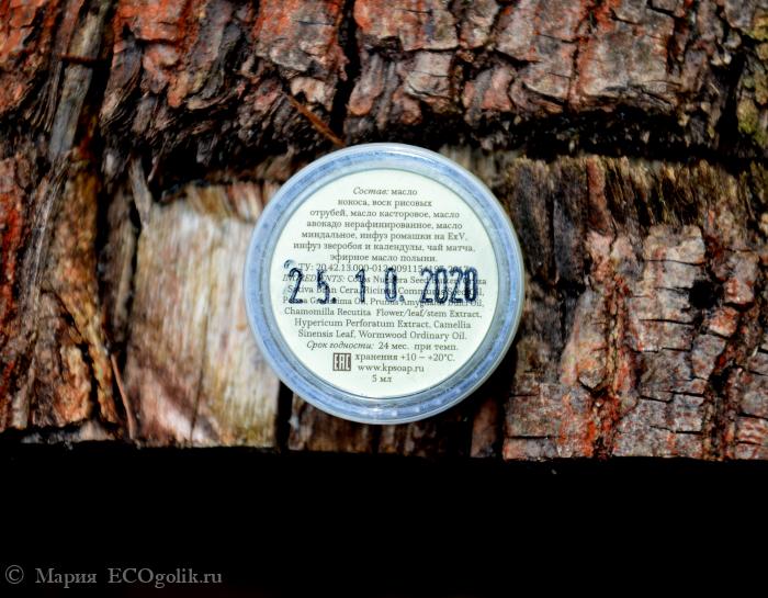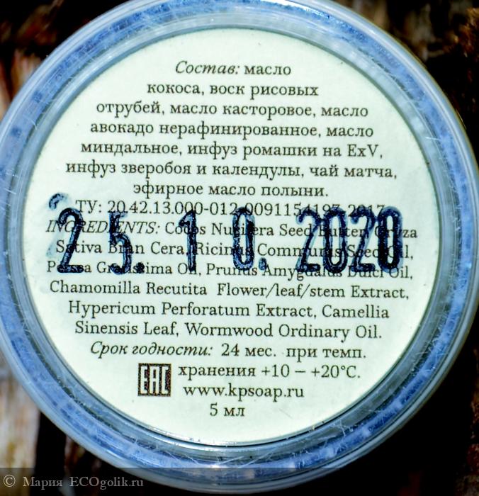 из ромашки, зверобоя, календулы и полыни. На масле кокоса и авокадо.