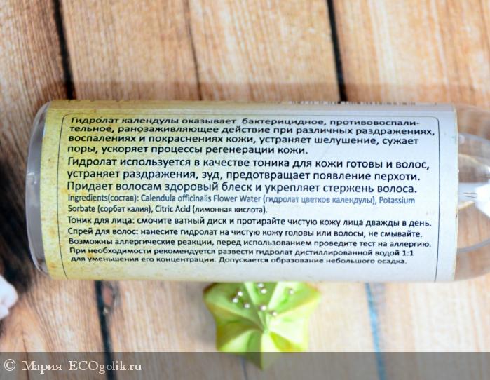 Ingredients(состав): Calendula officinalis Flower Water (гидролат цветков календулы), Potassium Sorbate (сорбат калия), Citric Acid (лимонная кислота).