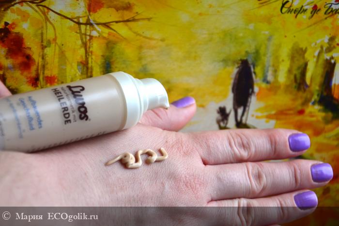 Не сказала бы, что у Luvos флюид ультралёгкий по текстуре. Напоминает обычный крем с необычным цветом. Дозатор работает отменно.