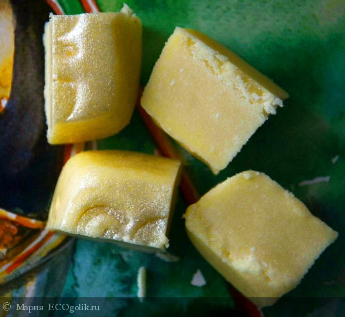 - Запах от самого брусочка, меня вначале несколько напряг, если честно - всё в нем чересчур! Слишком сладкий, слишком навязчивый, слишком концентрированный, слишком... Всё слишком!