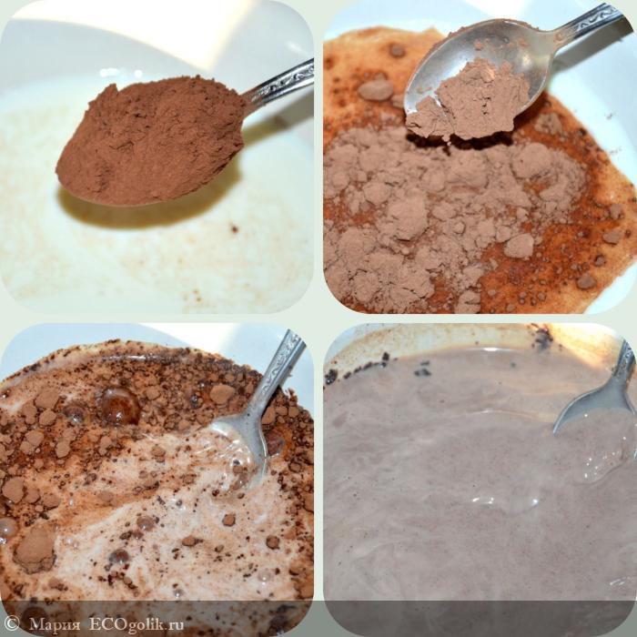 Какао размешивается не сразу, сначала образуются комочки, которые нужно тщательно перемешать.