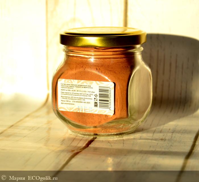 Помол невесомый, как мы и привыкли видеть у какао. Кстати, какао получают из семян какао-дерева.