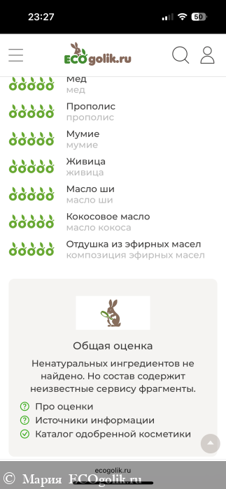 А вот состав древесного бальзама Russo Fabelo очень радует, он полностью натуральный и одобрен Анализатором Экоголика