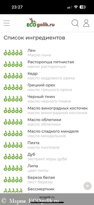 Хочется отметить, что обилие натуральных компонентов может быть риском для возникновения каких-либо реакций, но у меня, довольно чувствительной особы, никаких неприятных явлений не произошло.