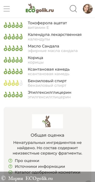 Проанализировав состав, видим, что продукт натуральный и лишь один ингредиент в «желтой зоне», это значит, что состав хорош. Да и Экоголик одобряет!