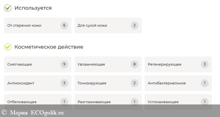 - Карите или масло ши - увлажняет и смягчает кожу, способствует заживлению ран и микротрещин, уменьшению отёчности, защищает от вредных воздействий (УФ-лучей, мороза, ветра). Масло ши подходит для всех типов кожи, включая чувствительную.