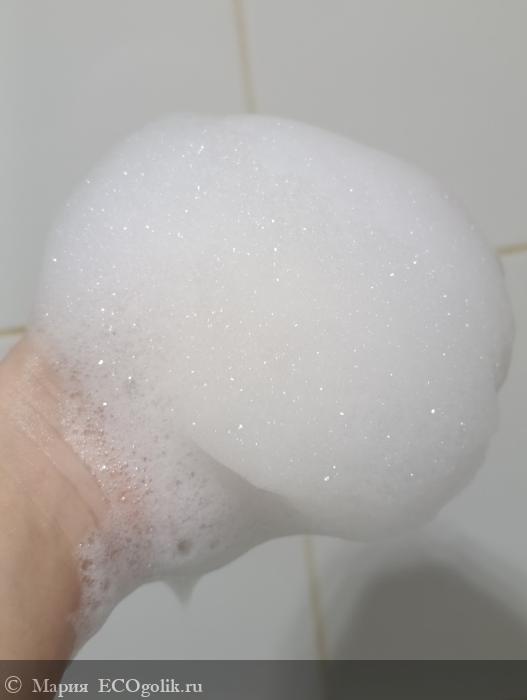 Гель отлично пенится и пышная пенная шапка держится долго.