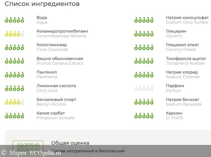 Состав геля для душа одобрен этим сайтом и признан натуральным и безопасным.