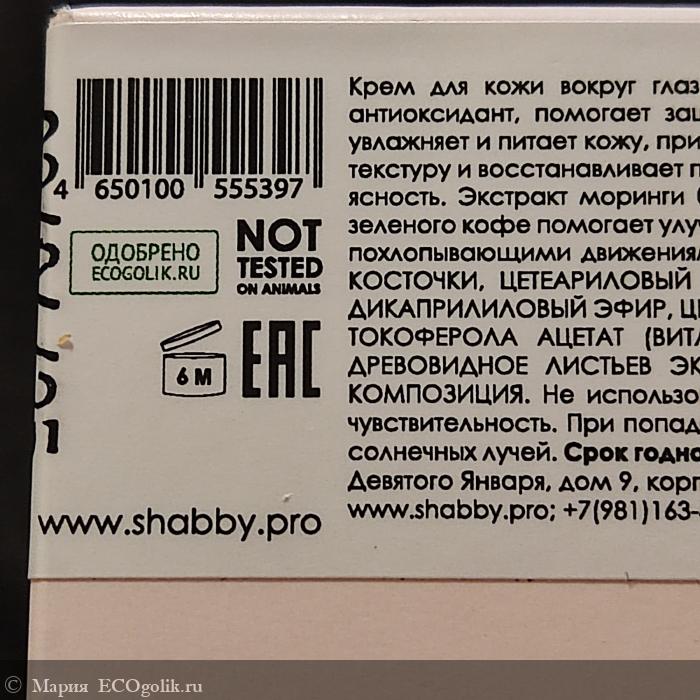 Крем для кожи вокруг глаз с экстрактом чаги увлажняющий от отеков от бренда SHABBY PRO пришелся мне по душе. Я не нашла в нем ни одного недостатка.