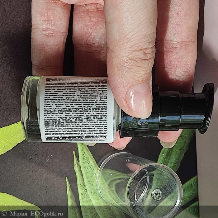ВОДА, МАСЛО ВИНОГРАДНОЙ КОСТОЧКИ, ЦЕТЕАРИЛОВЫЙ СПИРТ, ЦЕТИЛФОСФАТ КАЛИЯ, МАСЛО ОРЕХА МАКАДАМИИ ТРЁХЛИСТНОЙ, КАПРИЛИК/КАПРИК ТРИГЛИЦЕРИДЫ, ДИКАПРИЛИЛОВЫЙ ЭФИР, ЦЕТИЛОВЫЙ СПИРТ, СТЕАРИНОВАЯ КИСЛОТА, МАСЛО АРГАНЫ, ГЛИЦЕРИН, БЕНЗИЛОВЫЙ СПИРТ, ЭТИЛГЕКСИЛГЛИЦЕРИН, ТОКОФЕРОЛА АЦЕТАТ (ВИТАМИН Е), ГИАЛУРОНОВАЯ КИСЛОТА, КОФЕИН, ЛЕЦИТИН, СКВАЛАН, ЭКСТРАКТ ЦЕНТЕЛЛЫ АЗИАТСКОЙ, АЛОЭ ДРЕВОВИДНОЕ ЛИСТЬЕВ ЭКСТРАКТ, ЭКСТРАКТ ЧАГИ, ЭКСТРАКТ ЦЕЛЬНЫХ СЕМЯН МОРИНГИ, ЭКСТРАКТ ЗЕЛЕНОГО КОФЕ, АРОМАТИЧЕСКАЯ КОМПОЗИЦИЯ