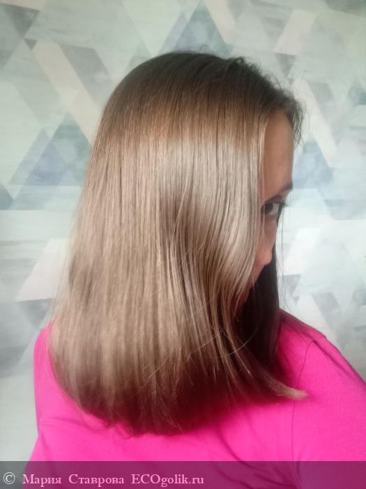- волосы внешне выглядят отлично: они гладкие и блестящие, по ощущениям лежат так, словно они у меня не тонкие и пушистые, а плотные и тяжелые, результат видно на фото: