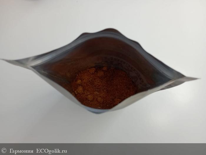 В упаковке 200 г продукта. Запах приятный, напоминает жженый сахар из детства. По сравнению с обычным кокосовым сахаром крупинки более мелкие, быстрее растворяются. Есть крупинки размером побольше. Изредка встречаются комочки, которые легко разбить ложкой. Цвет у сахара коричневый. Вкус не приторно сладкий, с карамельным оттенком, очень приятный.
