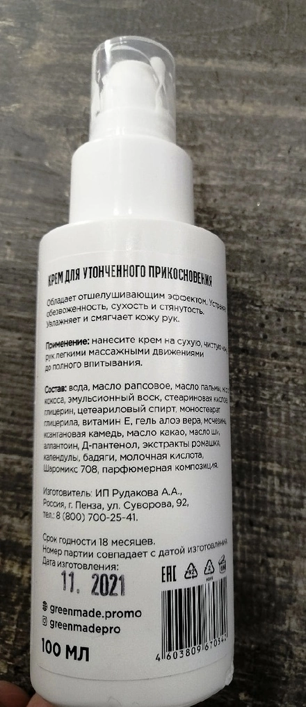 КРЕМ ДЛЯ РУК RE:FINE TOUCH/ ДЛЯ УТОНЧЕННОГО ПРИКОСНОВЕНИЯ ТМ GREENMADE