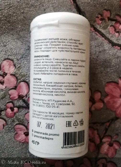 Пудра для умывания безабразивная с АНА-кислотами ТМ Greenmade \ white detox\non-abrasive exfoliant – прошу любить и жаловать.