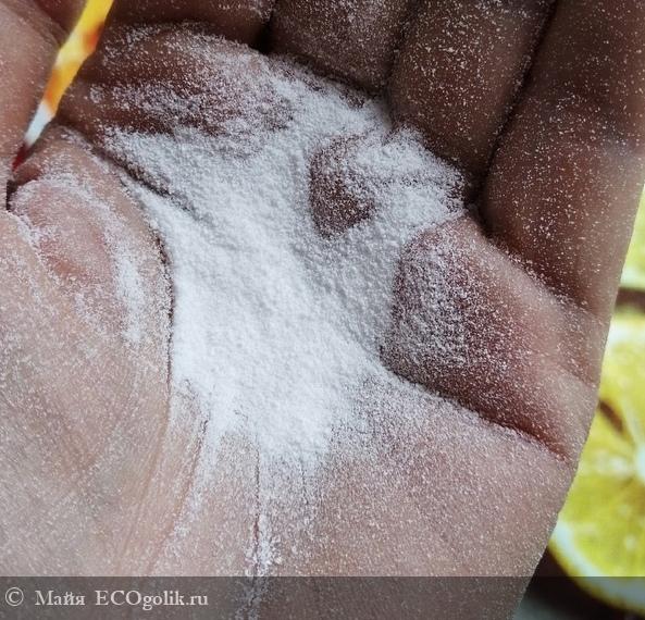 Текстура пудры похожа на соль Экстра мелкого помола и визуально и тактильно. Имеет слабый ментоловый запах.
