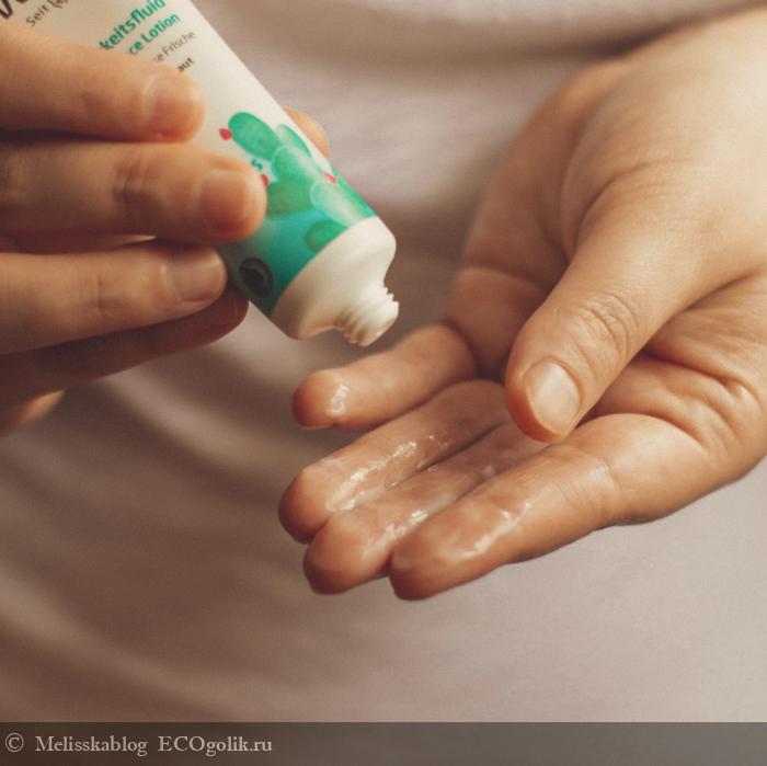 При нанесении, флюид будто превращается в освежающую воду и моментально впитывается.