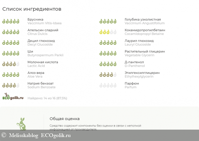 Сервис проверки, не обнаружил лишь безобидные экстракты Ежевики и Клюквы.