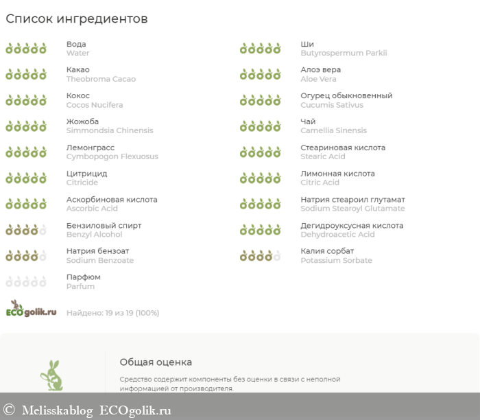 Сервис проверки Экоголик определил все ингредиенты, но под вопросом как всегда остаётся отдушка.