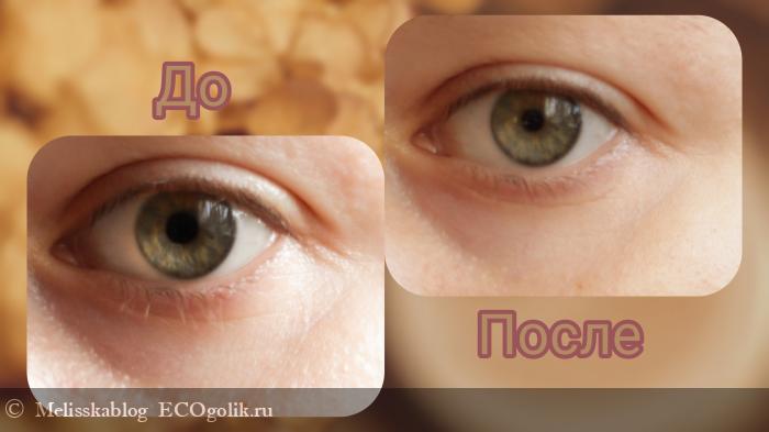 Сгладилась самая глубокая морщинка и лучики в уголках глаз. А мелкую сеточку, стало совсем практически не видно.