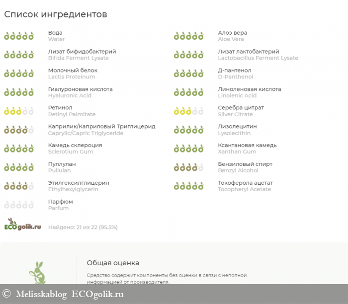 Сервис проверки Экоголик не определил один ингредиент, но и он полностью натуральный.