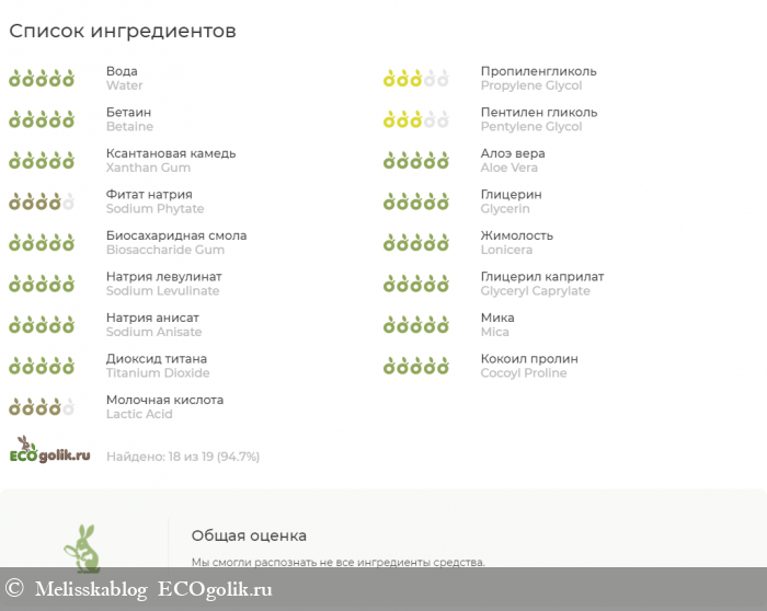 Сервис не распознал только саму Гиалуроновую кислоту – в составе её 1%