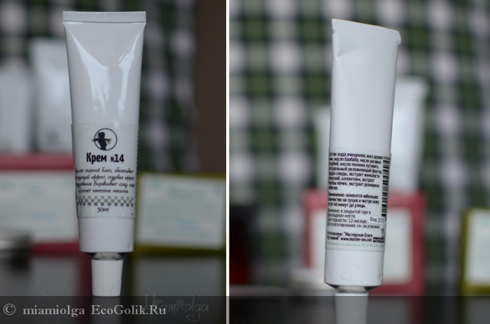 Как и остальные крем, крем для лица №14 от Олеси Мустаевой приходит в металлической тубе белого цвета.