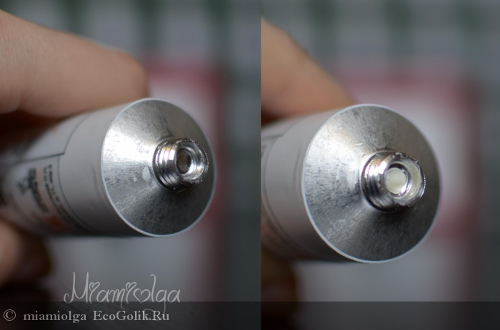 Сам крем - молочно-белого цвета, обладает чуть маслянистой консистенцией. Но впитывается довольно быстро.