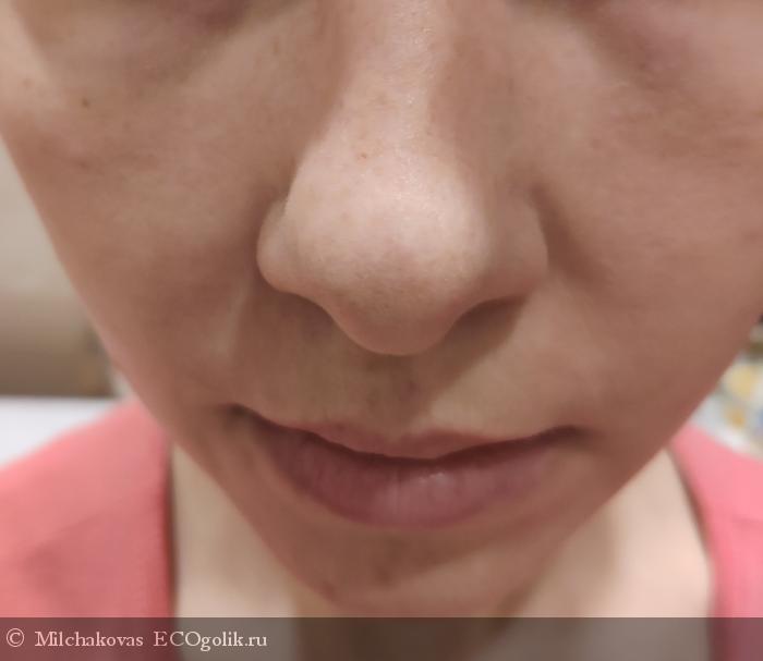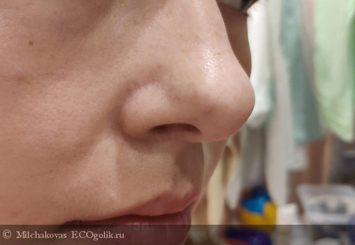 Многие черные точки исчезли вообще, а на носу значительно уменьшились! Воспаленных красных прыщиков нет и в помине! Улучшился рельеф кожи, он сгладился, кожа посвежела и приобрела более ровный тон, пропали шелушения и исчезло ощущение стянутости!
