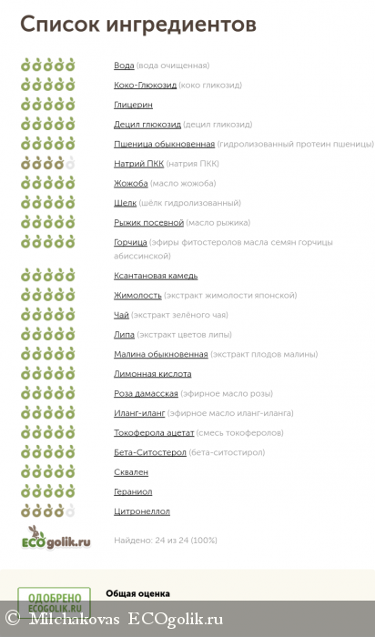 Кстати, все 24 компонента средства распознаны и одобрены сервисом по проверке состава:
