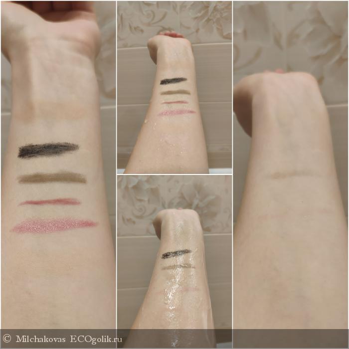 Гель справился со всеми образцами, оставив незначительный след от карандаша для губ и более выраженный от карандаша для бровей. Но стоит заметить, что образцы были нанесены несколько утрированно, в жизни все таки я растушевываю средства более тщательно. Поэтому с легким дневным макияжем гель вполне сможет справится сам, если вдруг возникнут такие обстоятельства!