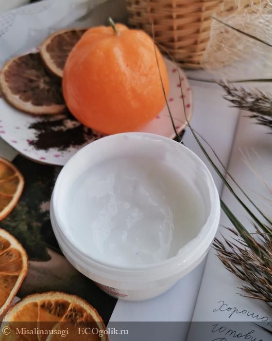 Он довольно быстро впитывается и аромат исчезает. Крем (как и практически любой натуральный) не сразу впитывается и распределяется по телу белыми полосами, которые надо потереть, чтобы впиталось. Это главное отличие от обычного крема для тела. Стоит это учитывать, при знакомстве с натуральной продукцией.