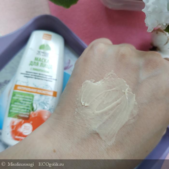 Масочка имеет аромат, который сложно с чем-то сравнивать, мне отдалённо напоминает томатные листья, когда они только начинают расти. Я не могу назвать аромат неприятным, но он определённо на любителя.