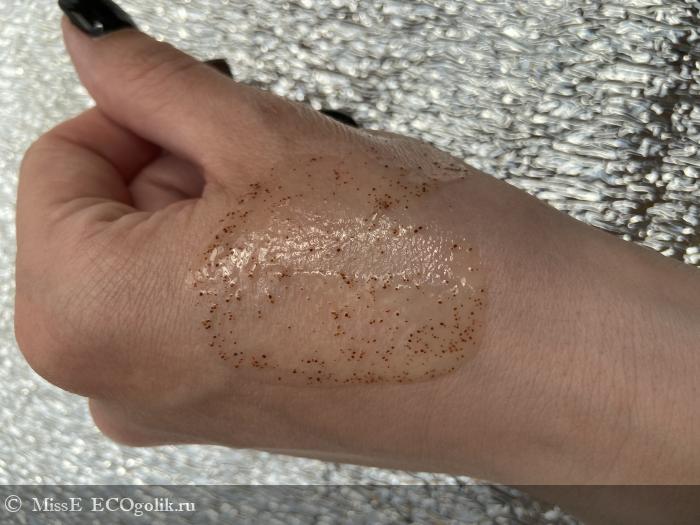 Консистенция средства не позволяет вспенить его особенно сильно, но мне пена особо и не нужна, мне достаточно наличия скрабирующих частиц. Зато текстура позволяет легко смыть продукт после того, как он поработает на коже.