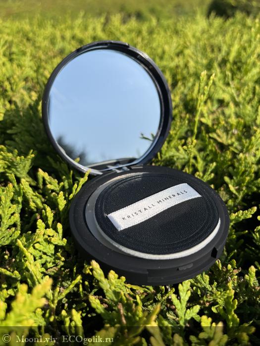 Компактная тональная матовая основа Kristall Minerals - это полноценный, самодостаточный косметический продукт. В пудренице мы находим зеркальце и спонжик.