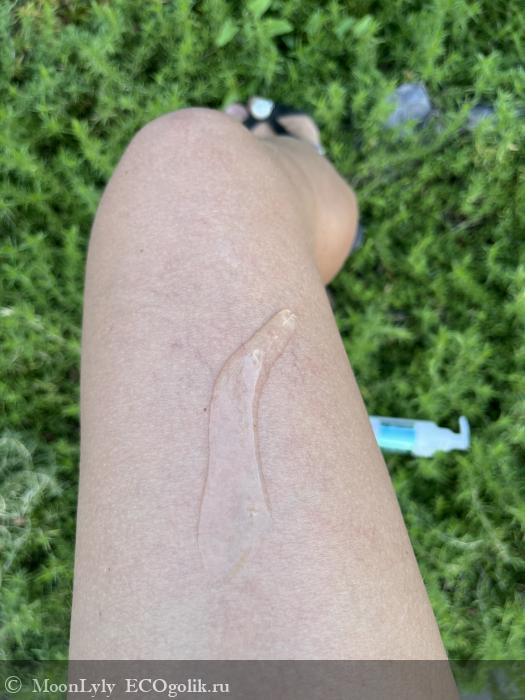 При втирании в кожу продукт долгое время скользит, позволяя массировать участки тела. При этом, нет маслянистости. С секундомером не засекала, но минуты 3-4 точно кожа влажная и скользкая
