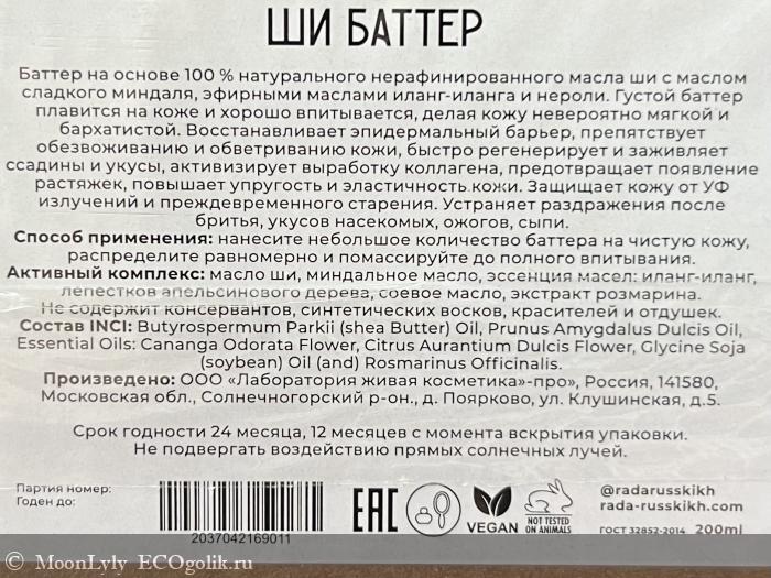 Баттером для тела с маслом Ши RADA Russkikh можно пользоваться по двум направлениям:
