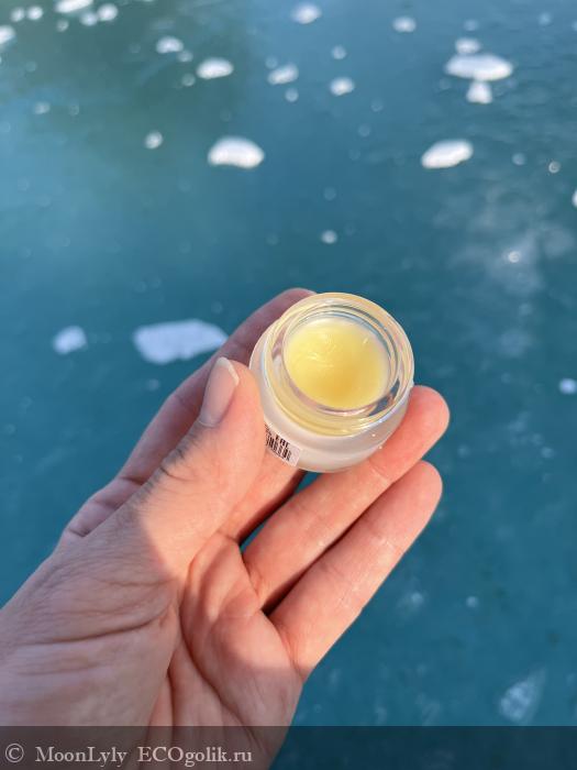 Продукт бледно-жёлтого цвета. Своим полупрозрачным жёлтым цветом он напоминает топлёное масло или масло гхи. Он даже в баночке имеет глянцевый блеск, предвкушаю, что будет на губах!