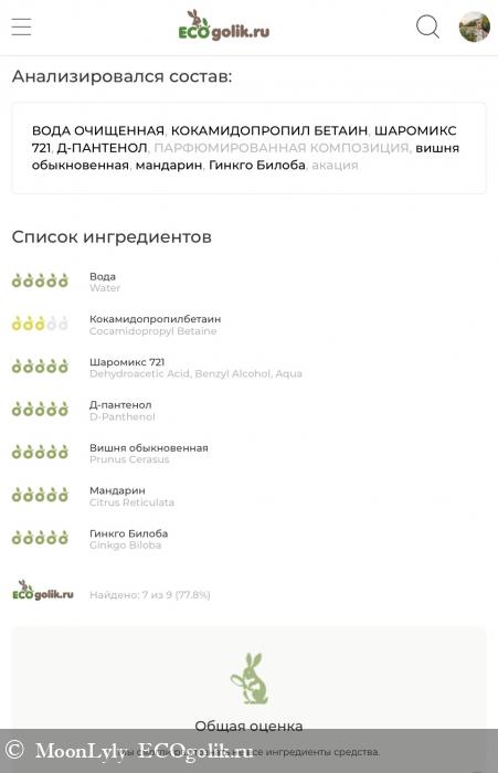 Проверка состава сервисом Экоголик.